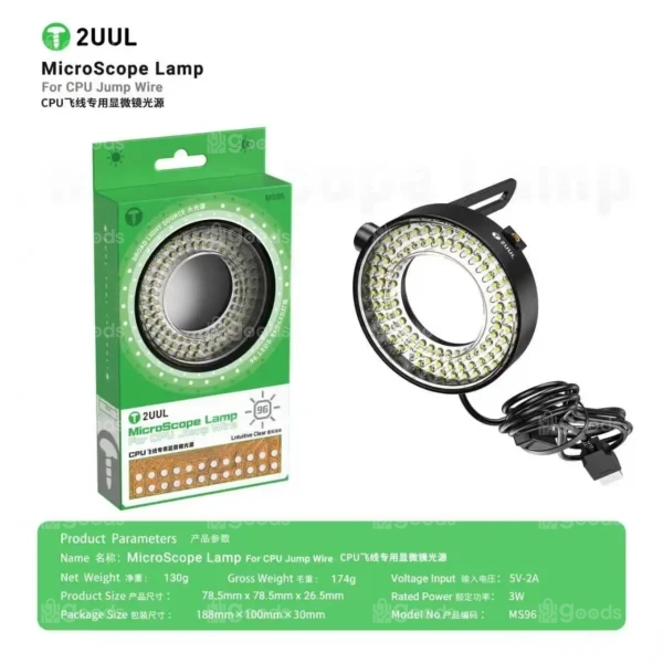 2UUL MS96 CPU Jump Wire Microscope Lamp, 96 LED Ring Light with Adjustable Angle & Brightness, Anti Glare for Clear View