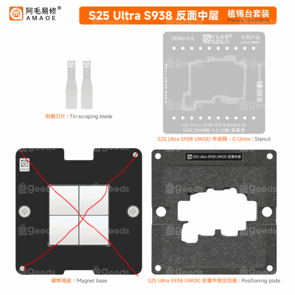 Amaoe S25 sm-s938u Middle Layer BGA Reballing Stencil Platform for Samsung S25 ultra