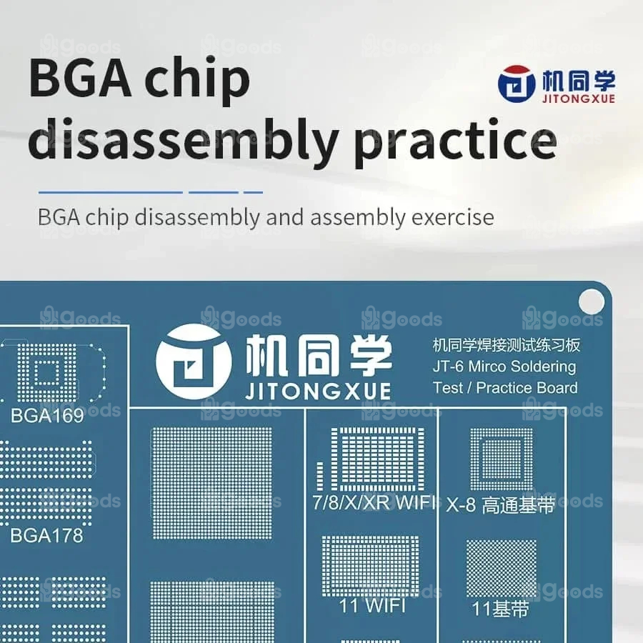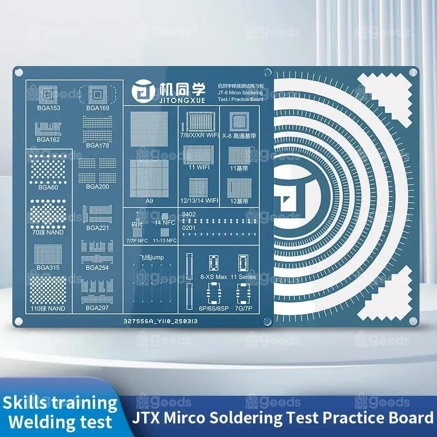The JTX JT-6 is a dedicated micro-soldering practice board that enables hands-on training for Mobile Phone Repair Skills Training,such as chip,BGA work,jumper soldering—while also providing a platform to test soldering irons, materials, and consumables.